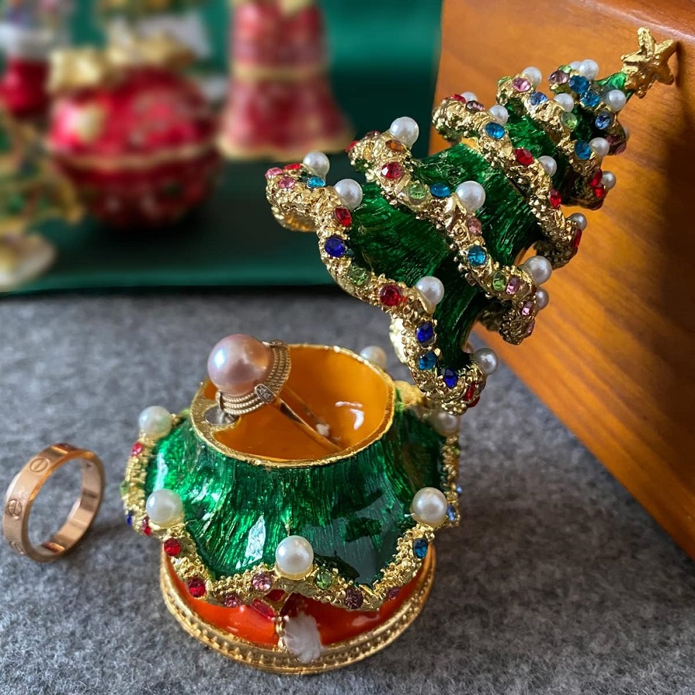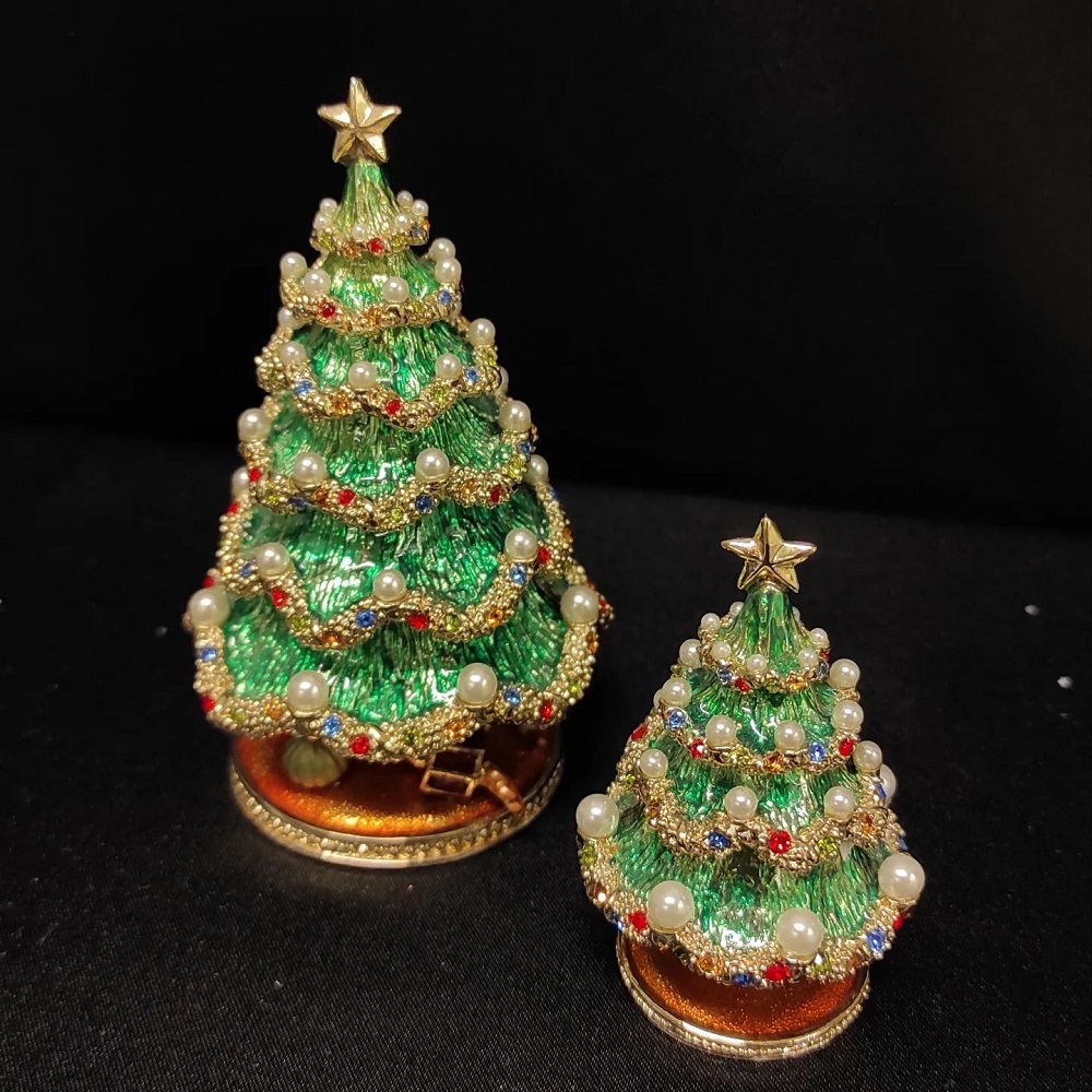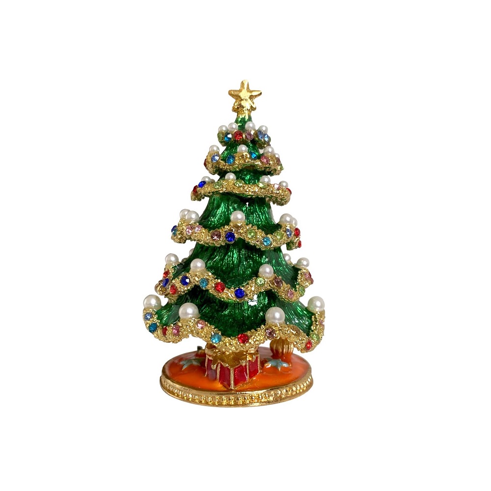 Albero di Natale ornamentale decorato con laccatura colorata, strass colorati e perle. Chiusura con calamita