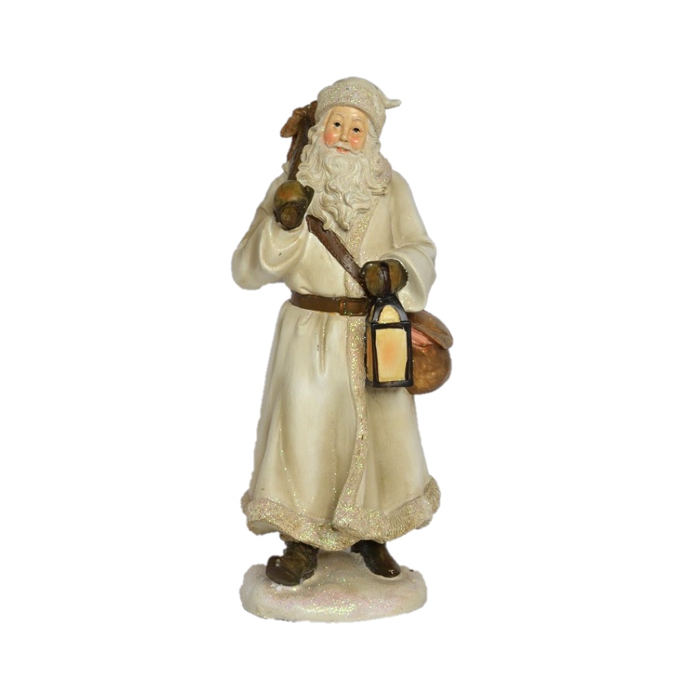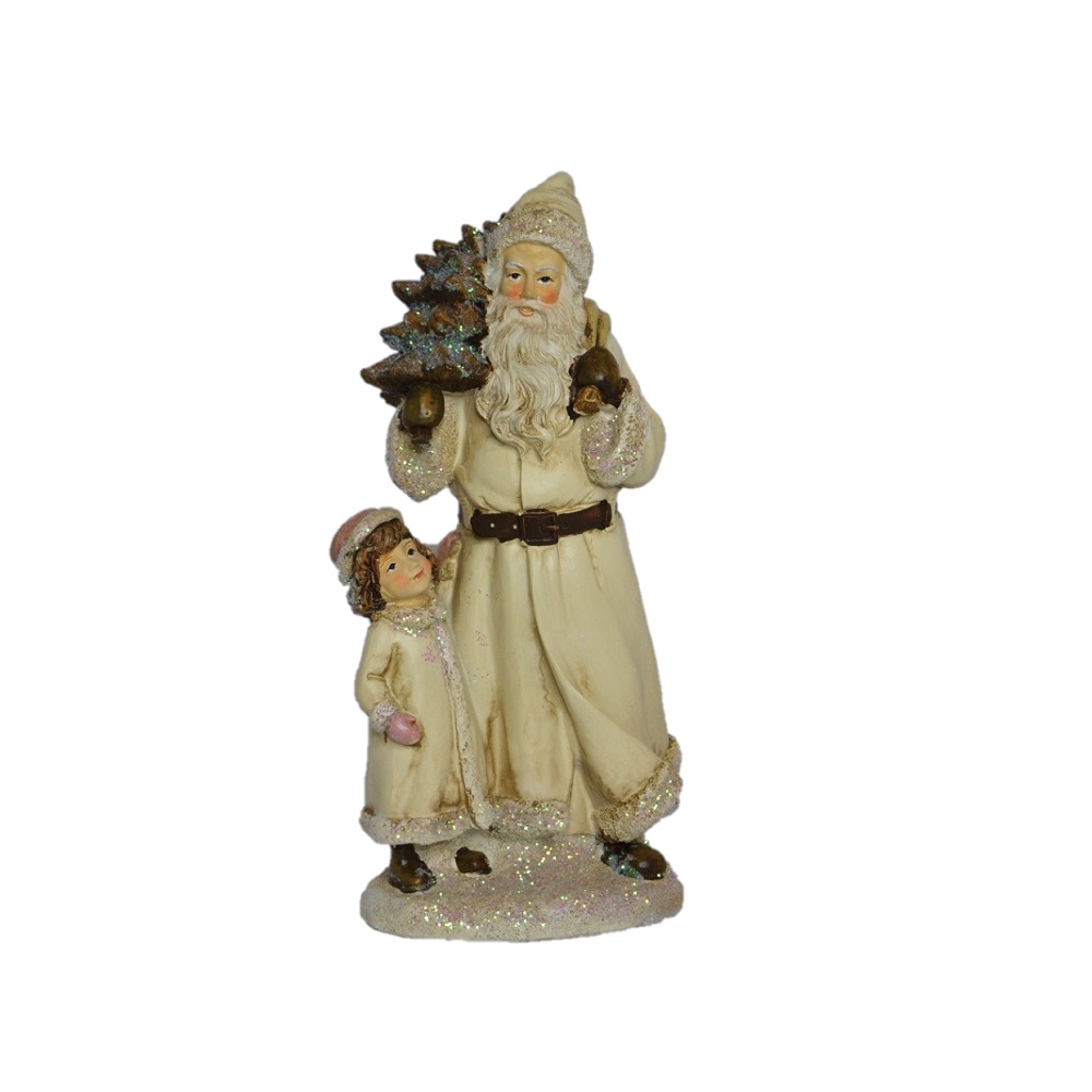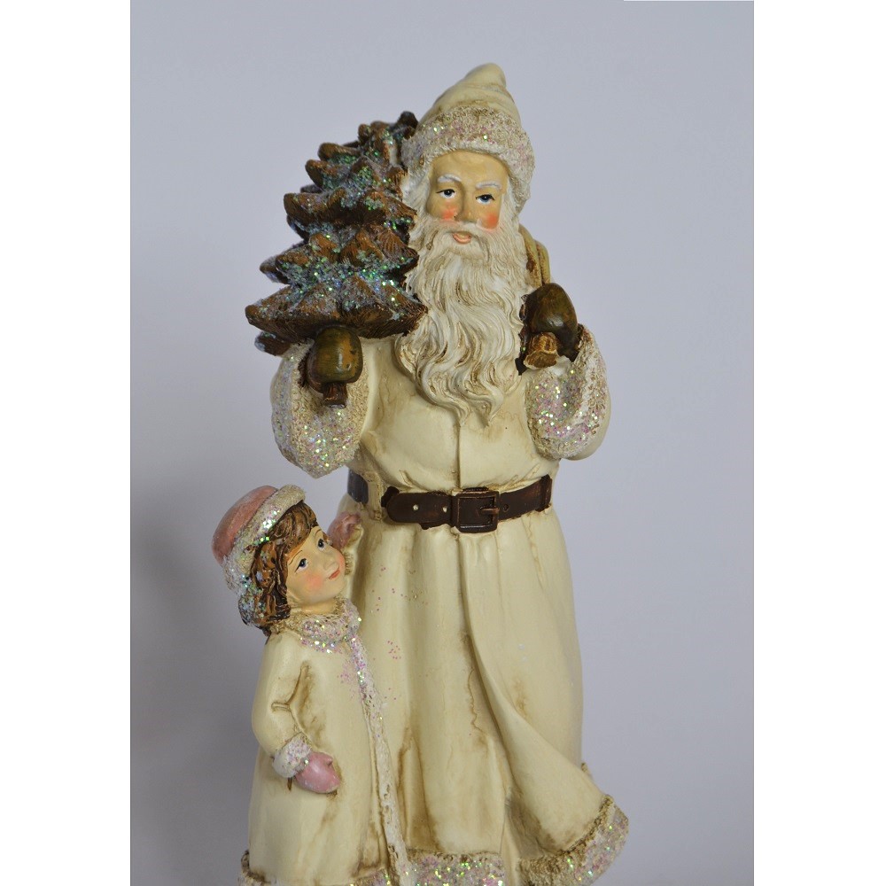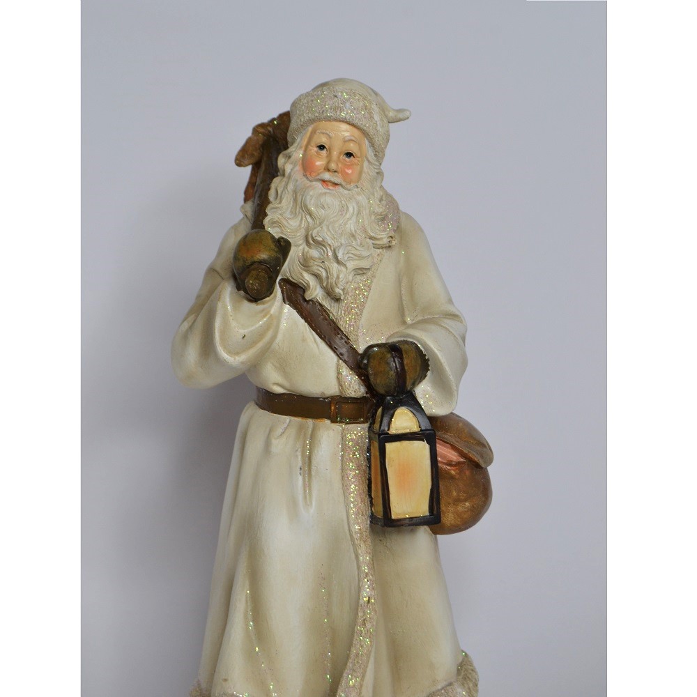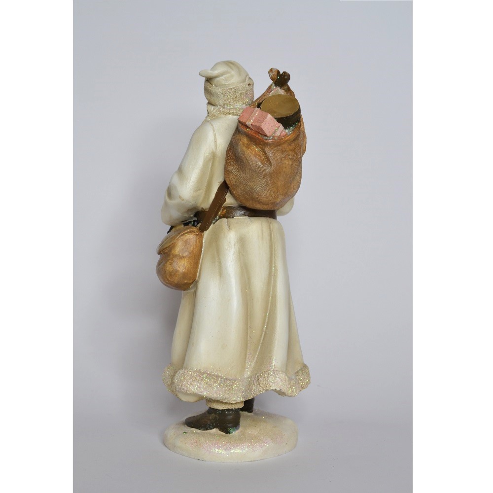 Babbo Natale con doni in resina color avorio con dettagli glitter