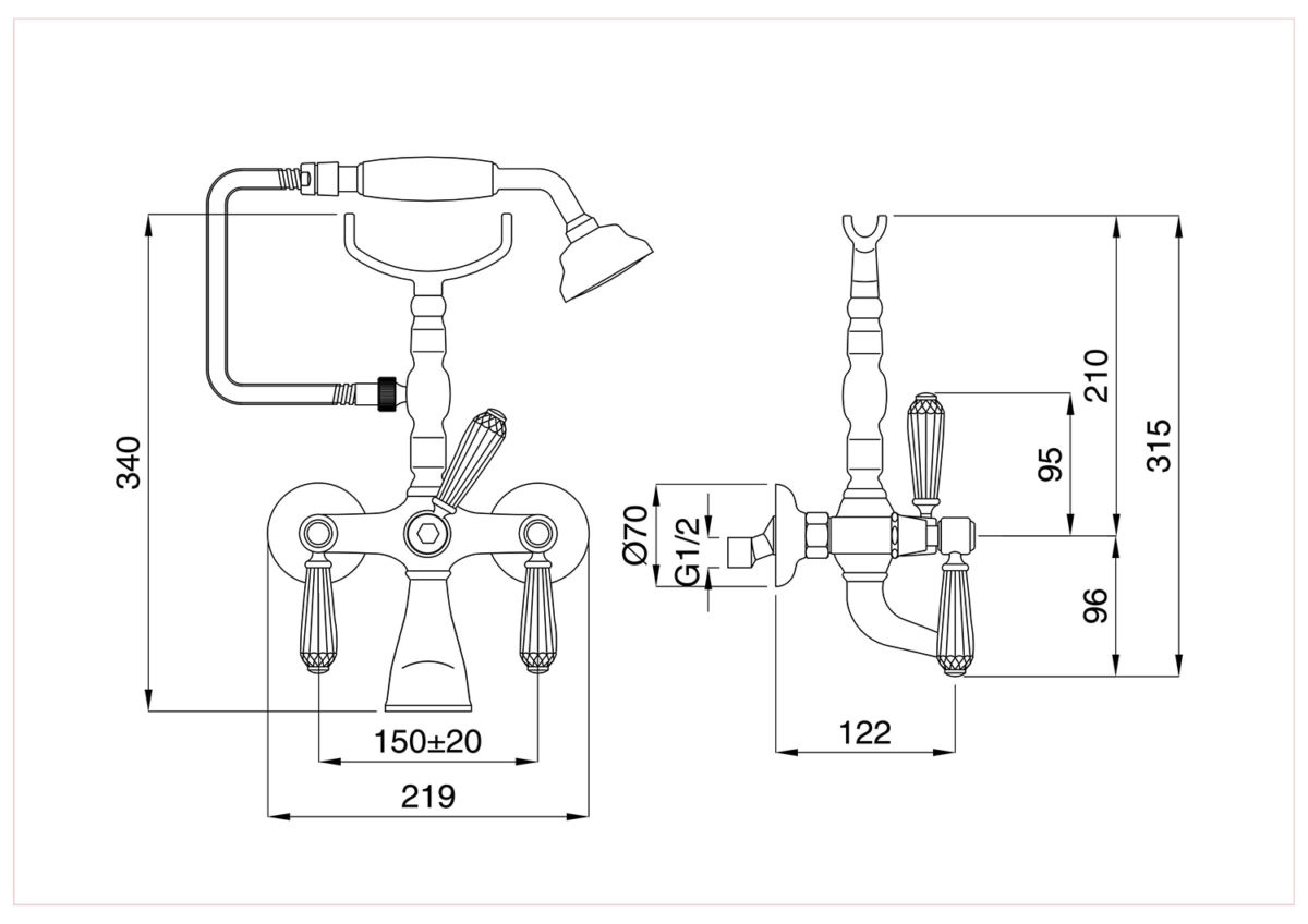 Gruppo vasca esterno con doccia normale collezione REVIVAL KRISTAL di Bugnatese.
