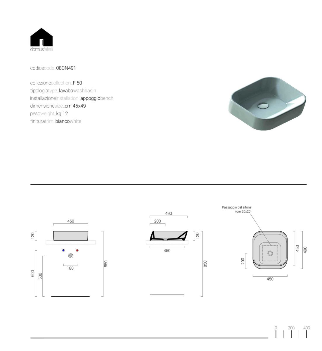 Lavabo d’appoggio collezione F50 di DOMUSFALERII.