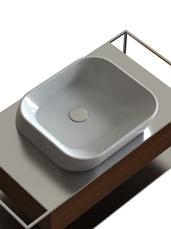 Il lavabo proposto può essere installato in appoggio su un piano di qualsiasi natura, ad esempio in pietra o legno.