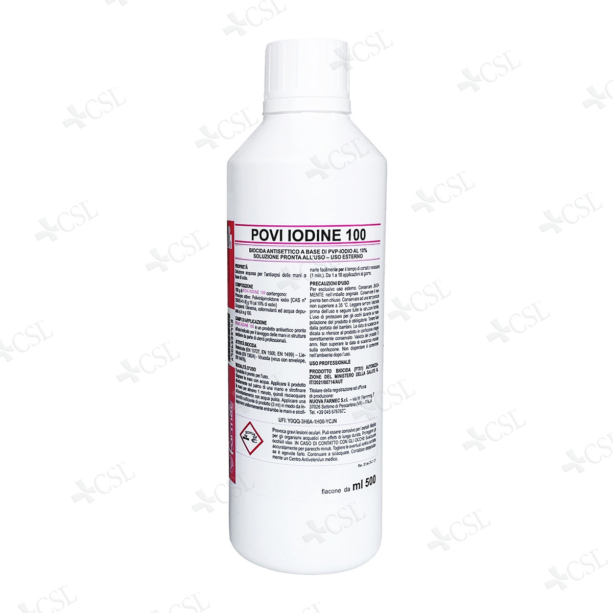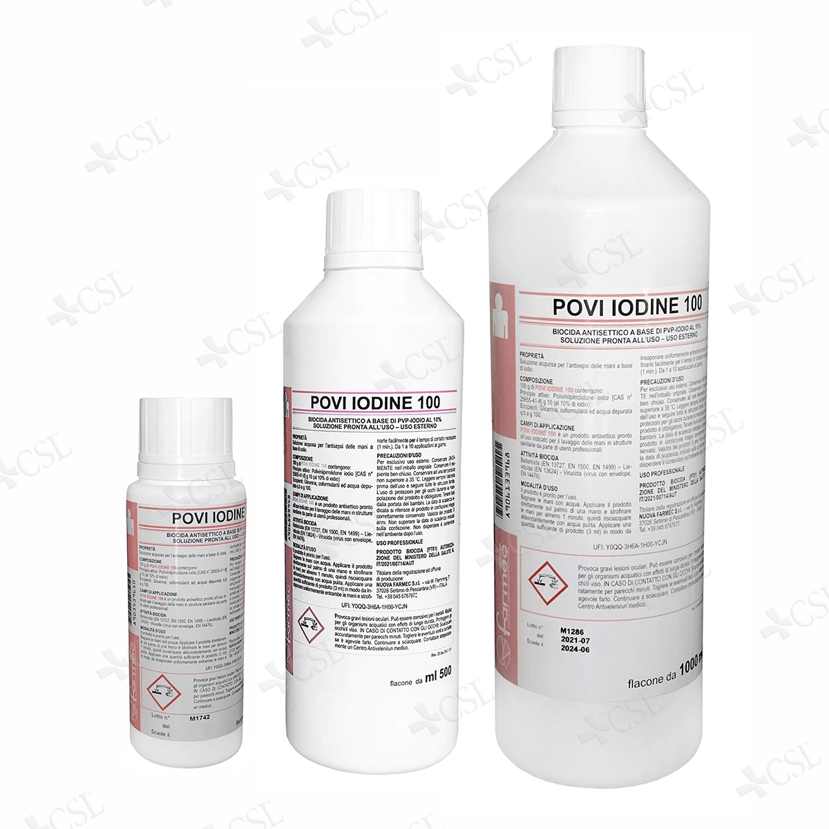 Soluzione acquosa pronta all’uso a base di Iodopovidone in concentrazione pari al 10%. Indicato per la disinfezione e la pulizia della cute integra.