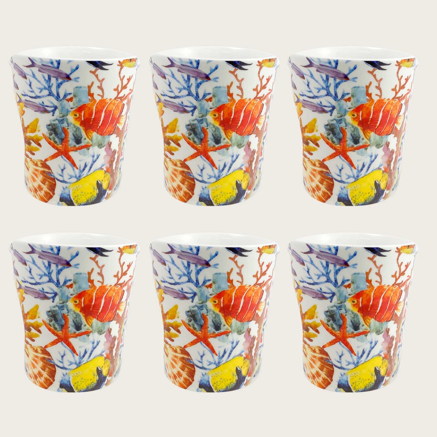 Set 6 bicchierini da caffe’ Mediterranea realizzati in fine porcellana.